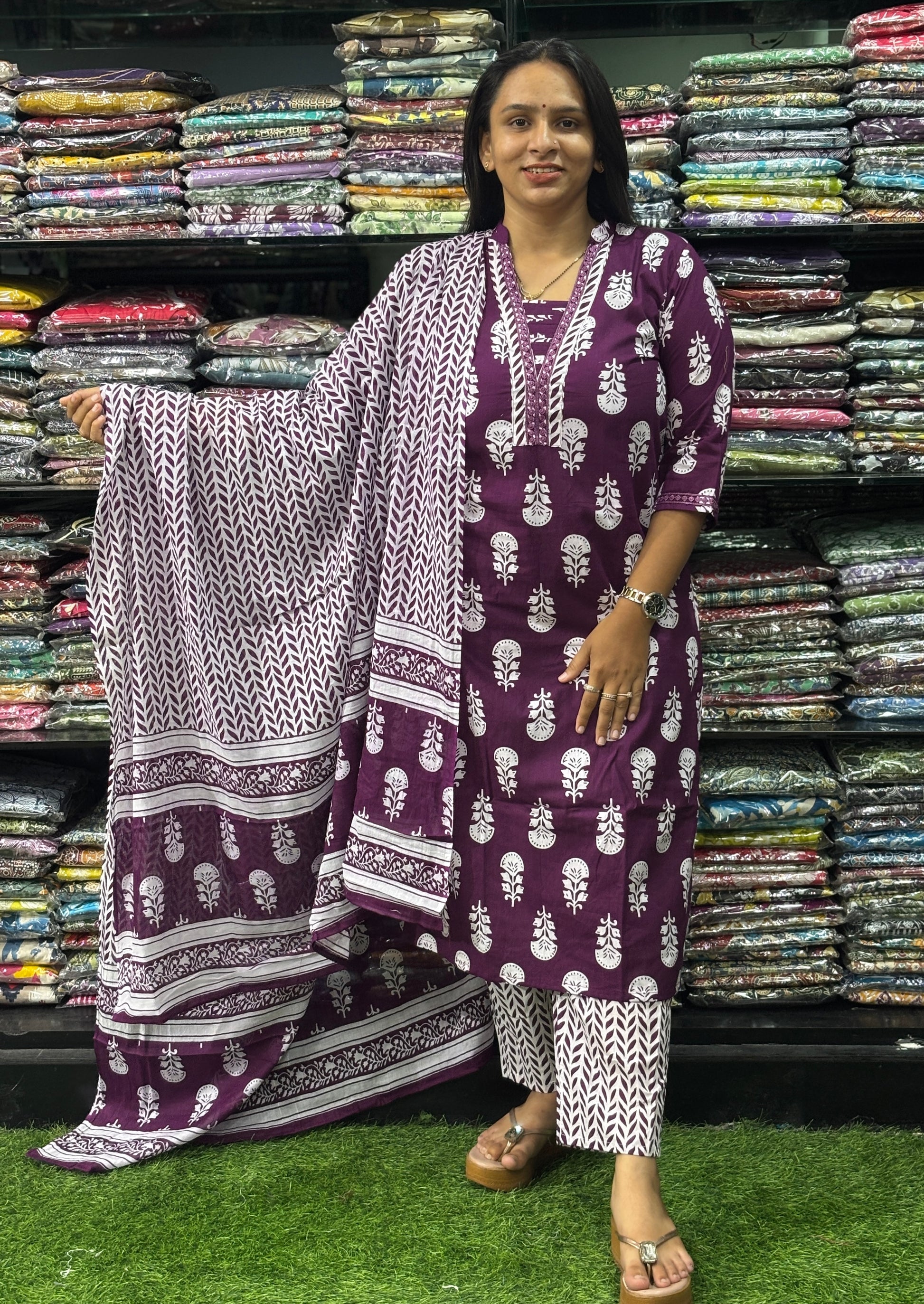 STRAIGHT KURTI-PANT WITH DUPATTA (PURE CAMRIC COTTON)