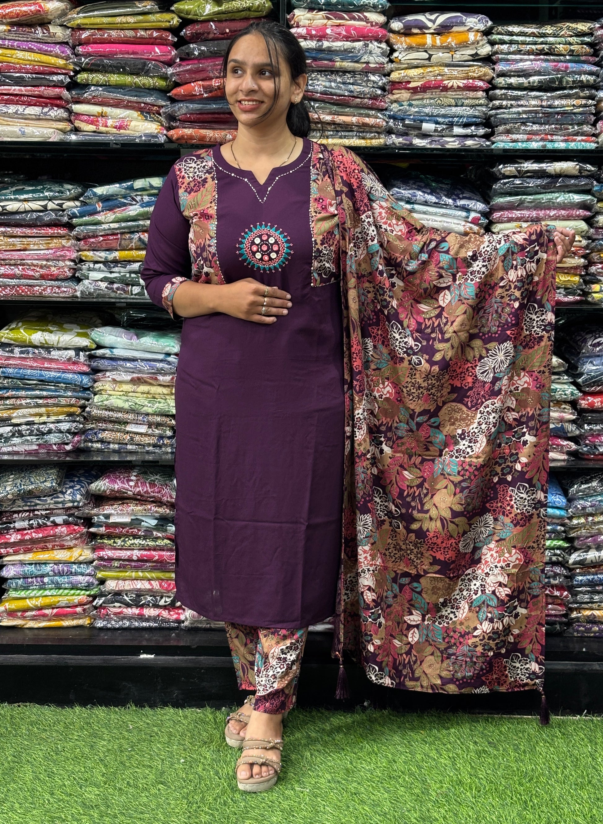 STRAIGHT KURTI PANT WITH DUPATTA (PURE RAYON,HANDWORK)