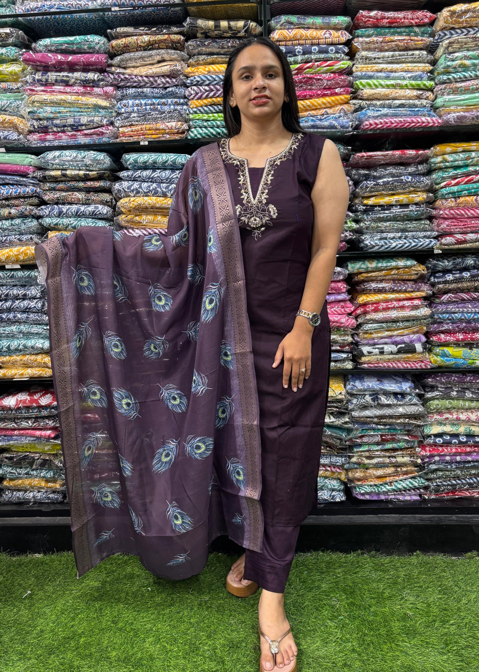 STRAIGHT KURTI PENT DUPATTA (JAM COTTON(COTTON LINING),WITH WORK)