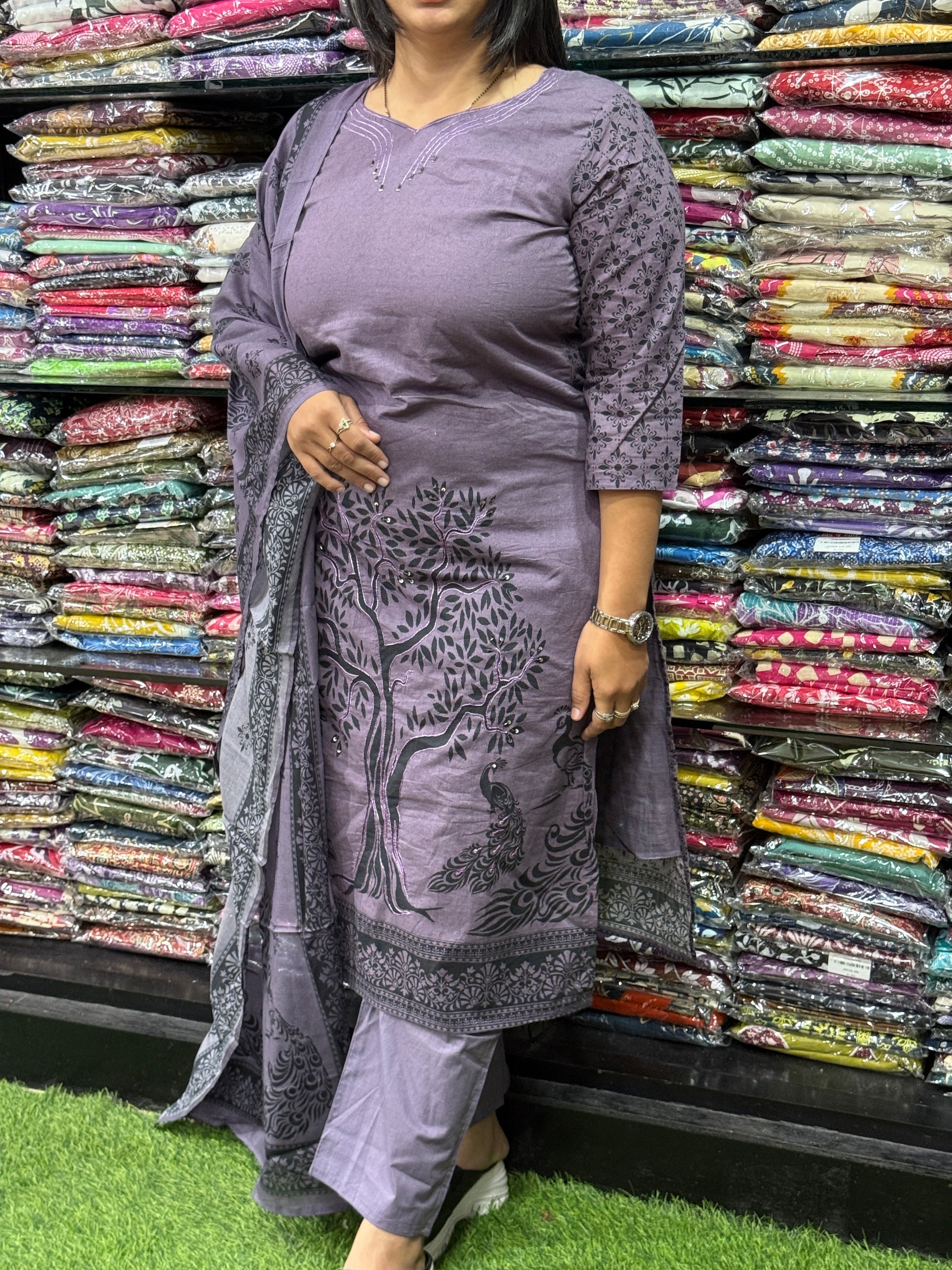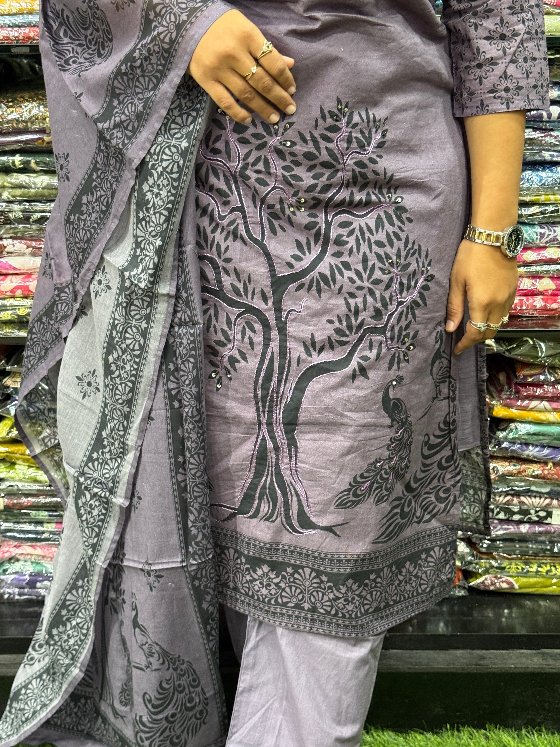 STRAIGHT KURTI PENT DUPATTA (PURE COTTON ,WITH WORK)