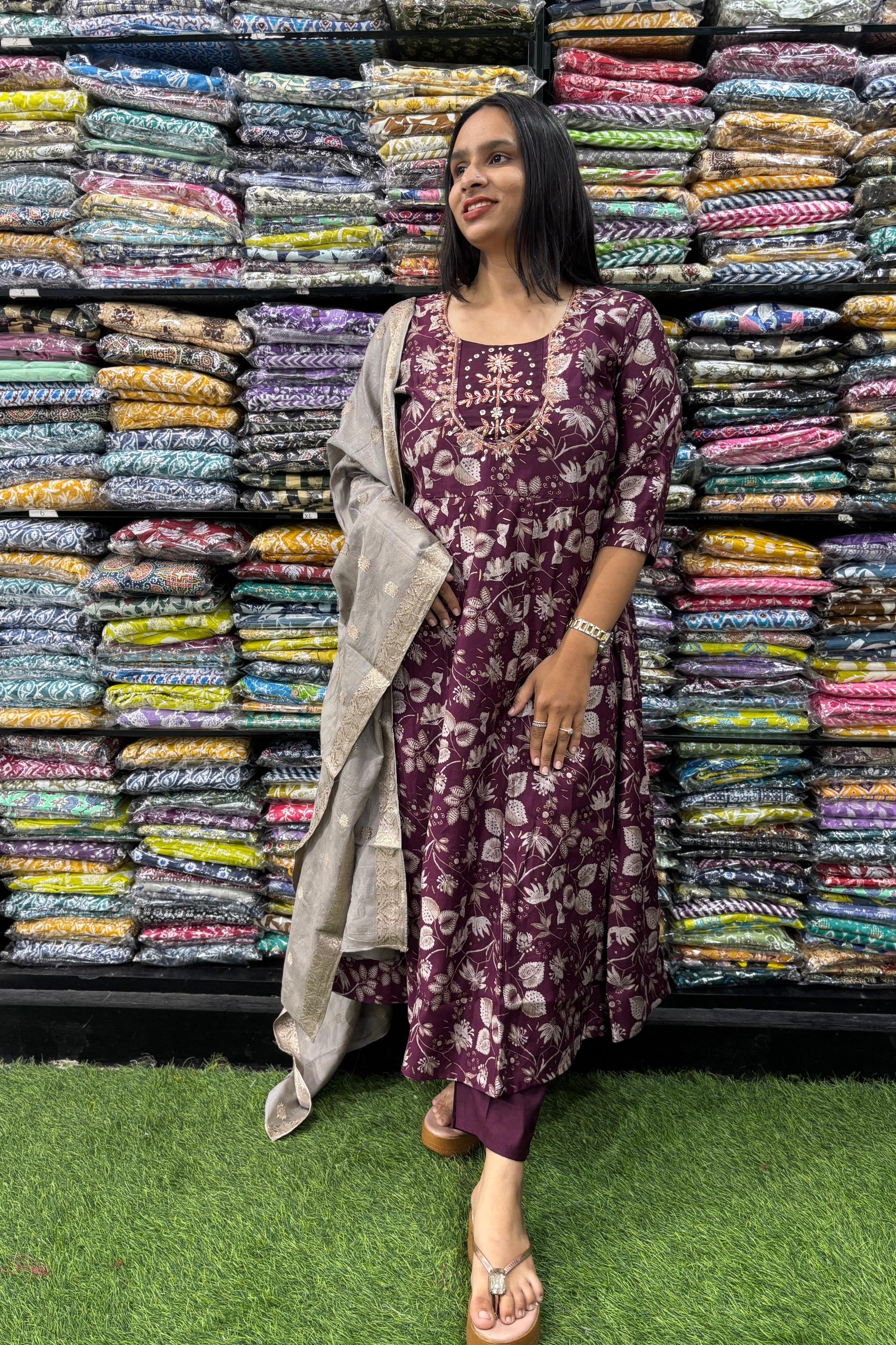 ROUND KURTI PENT DUPATTA (VERTICAN SILK (COTTON LINING),WITH WORK)