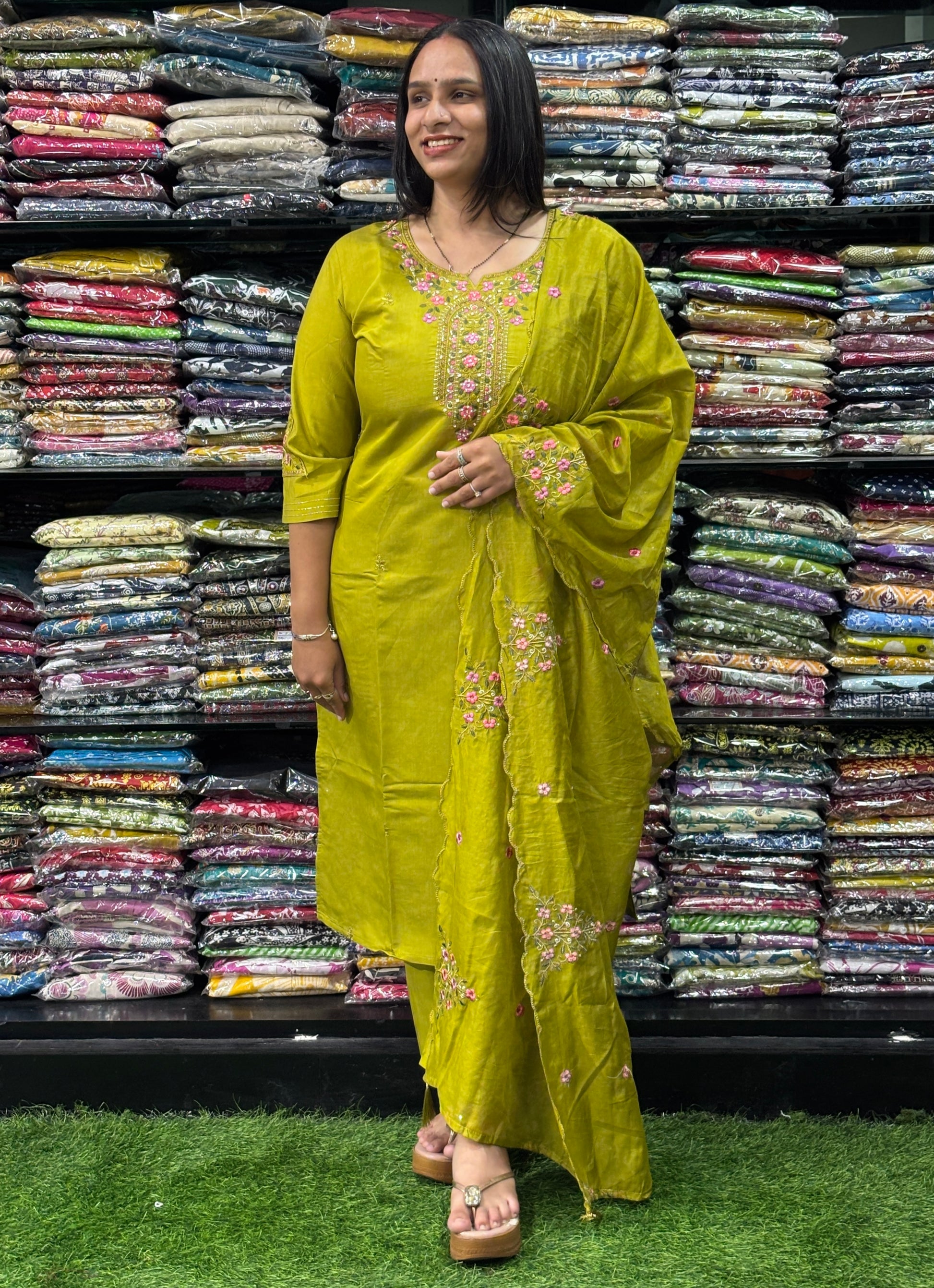 STRAIGHT KURTI PENT DUPATTA (ROMAN SILK WITH COTTON LINING ,WITH WORK)