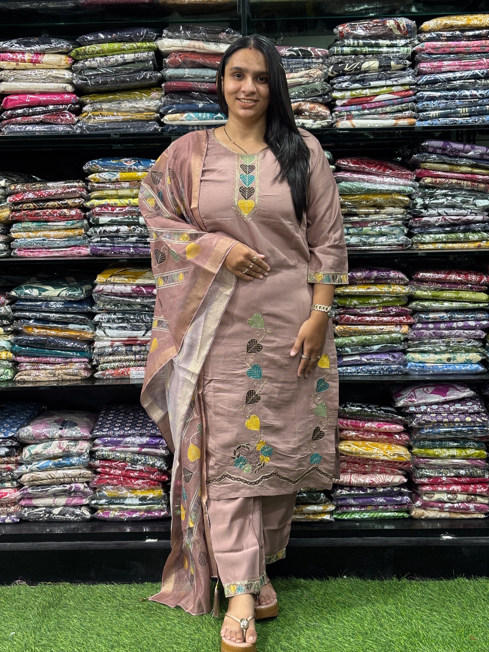 STRAIGHT KURTI PENT DUPATTA (ROMAN SILK ,WITH WORK)