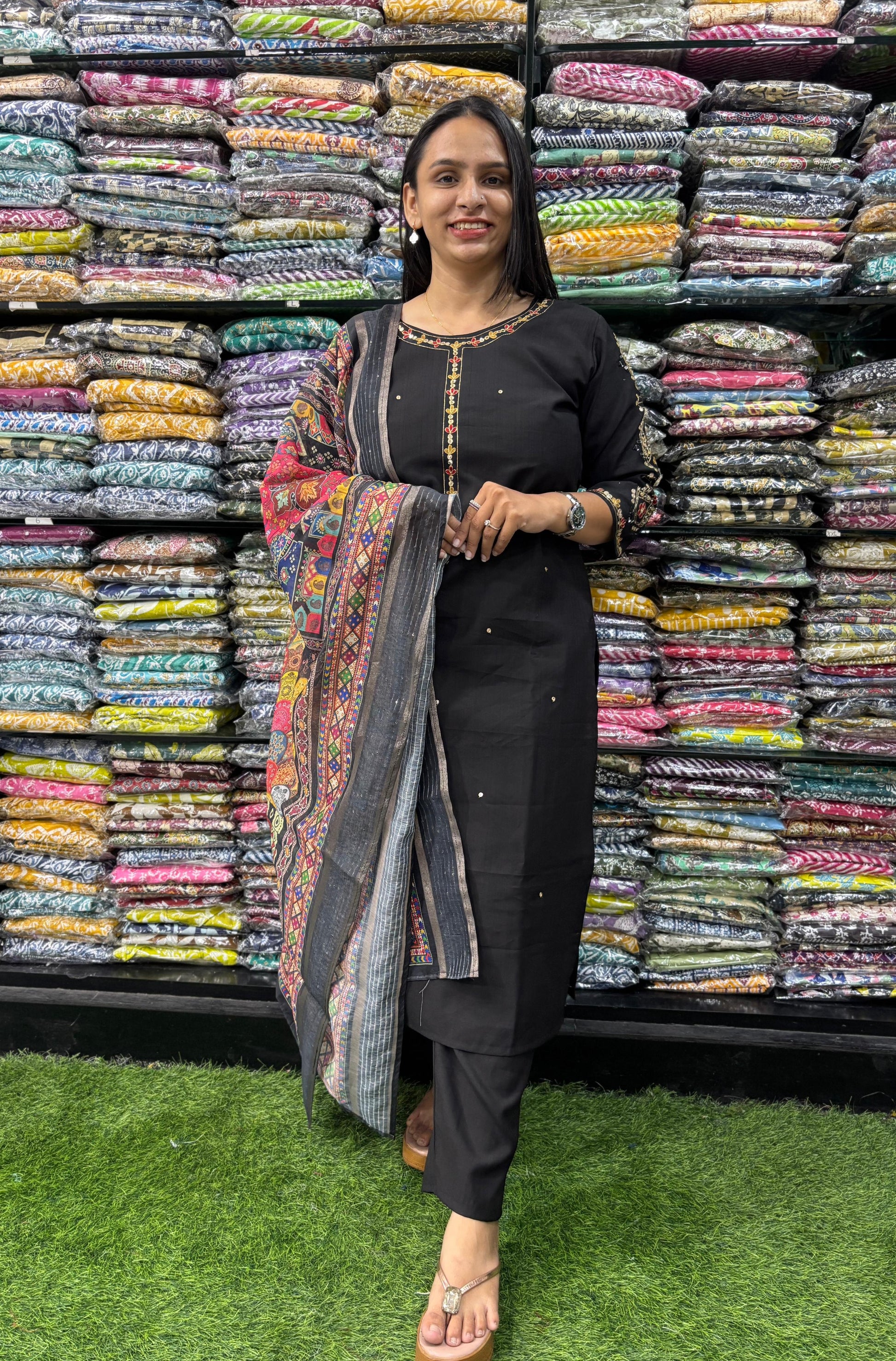 STRAIGHT KURTI PENT DUPATTA (VERTICAN SILK(COTTON LINING),WITH WORK)
