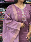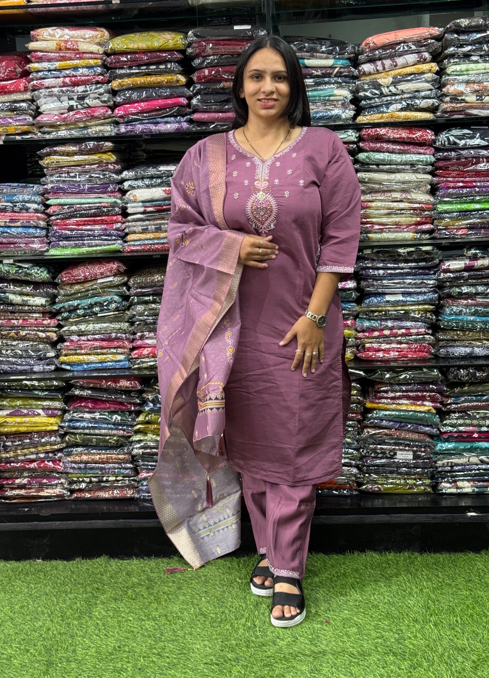 STRAIGHT KURTI PENT DUPATTA (ROMAN SILK (COTTON LINING),WITH WORK)