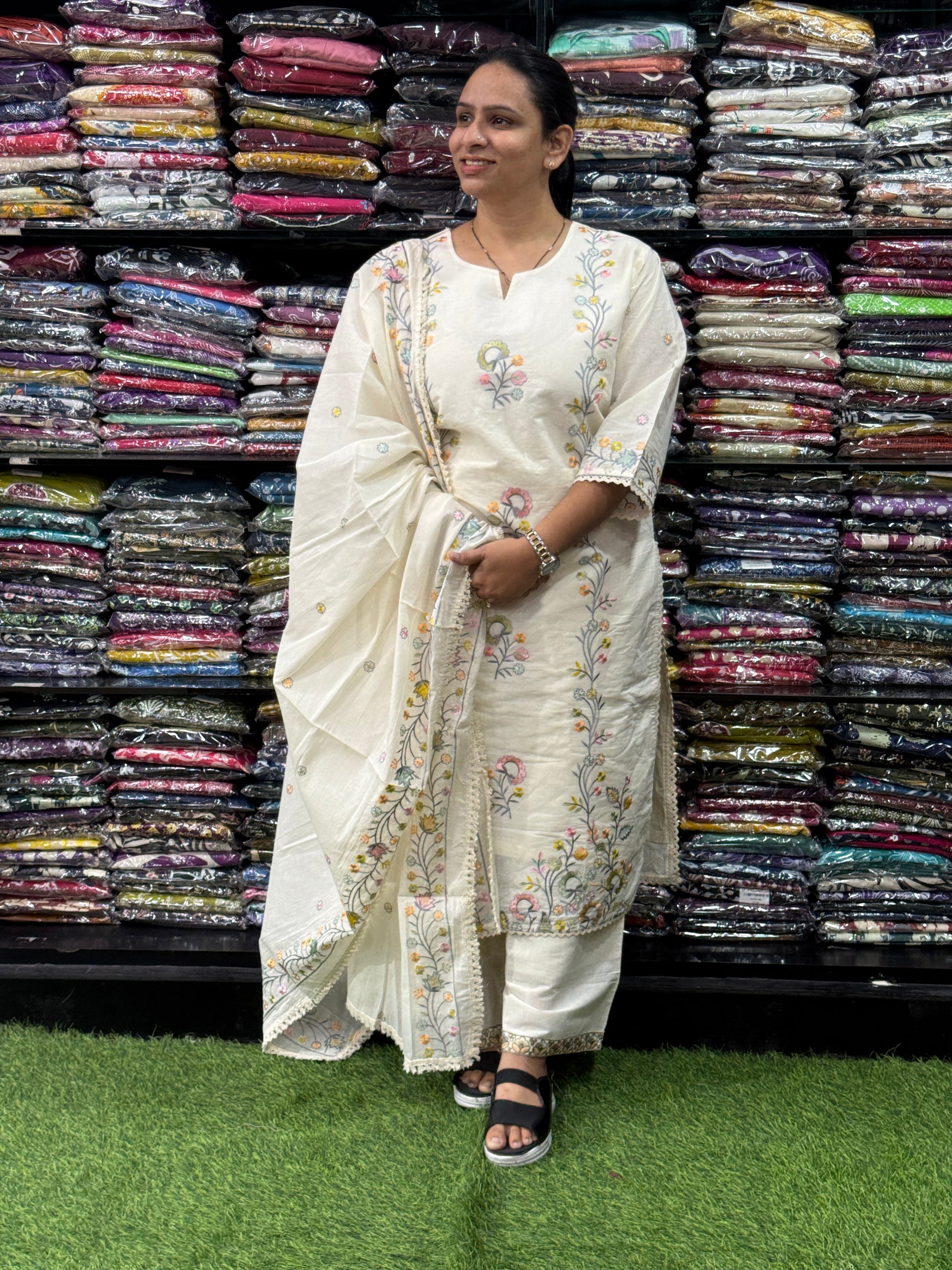 STRAIGHT KURTI PLAZO DUPATTA (PURE COTTON(COTTON LINING),WITH WORK)