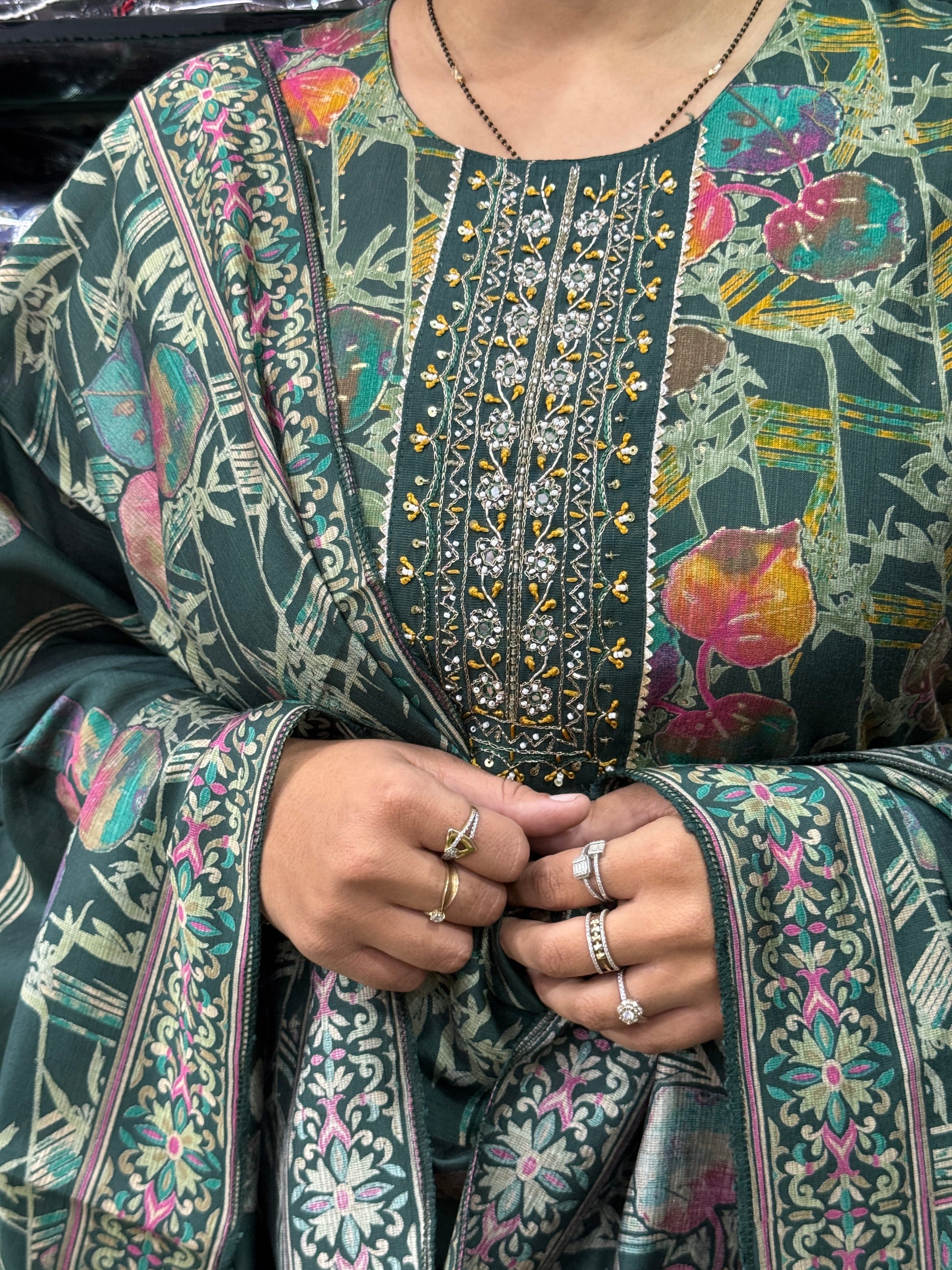 Here’s Presenting You A Beautiful And Elegant TOP-BOTTOM-DUPATTA .Holds cultural significance, reflecting elegance and tradition.Twirling through traditions with a touch of glam.