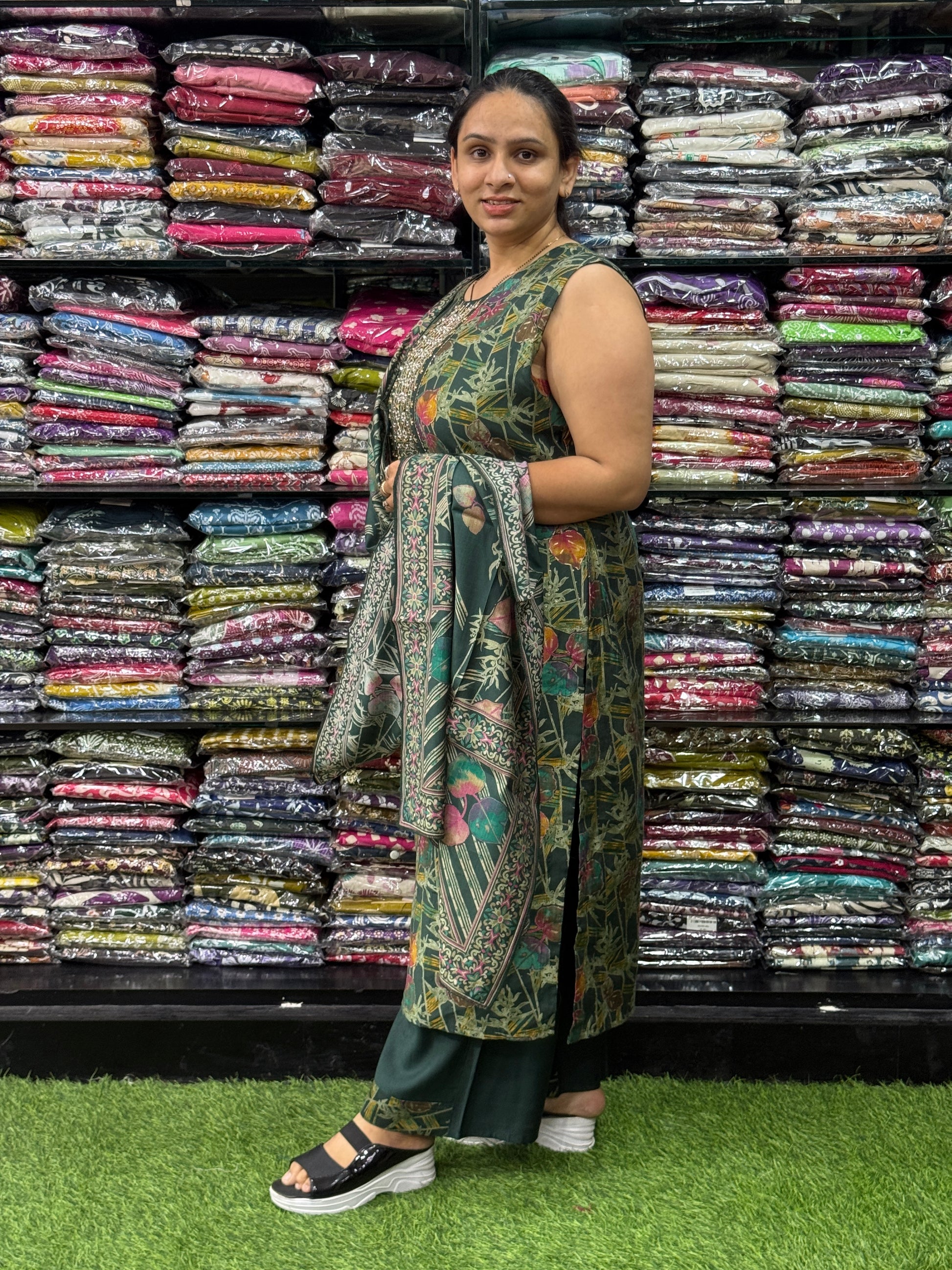 STRAIGHT KURTI PLAZO DUPATTA (VERTICAN SILK(COTTON LINING,SLEEVE AVAILABLE),WITH WORK)