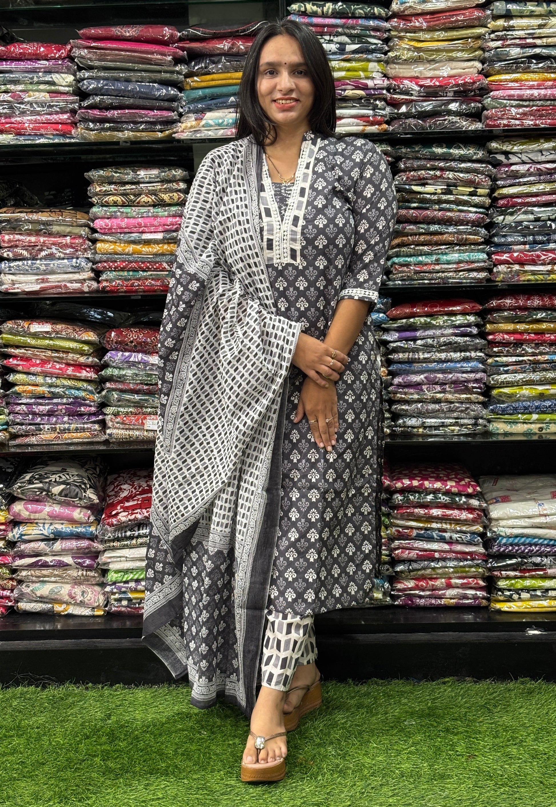 STRAIGHT KURTI WITH PANT & DUPATTA (PURE CAMRIC COTTON,COTTON LINING)