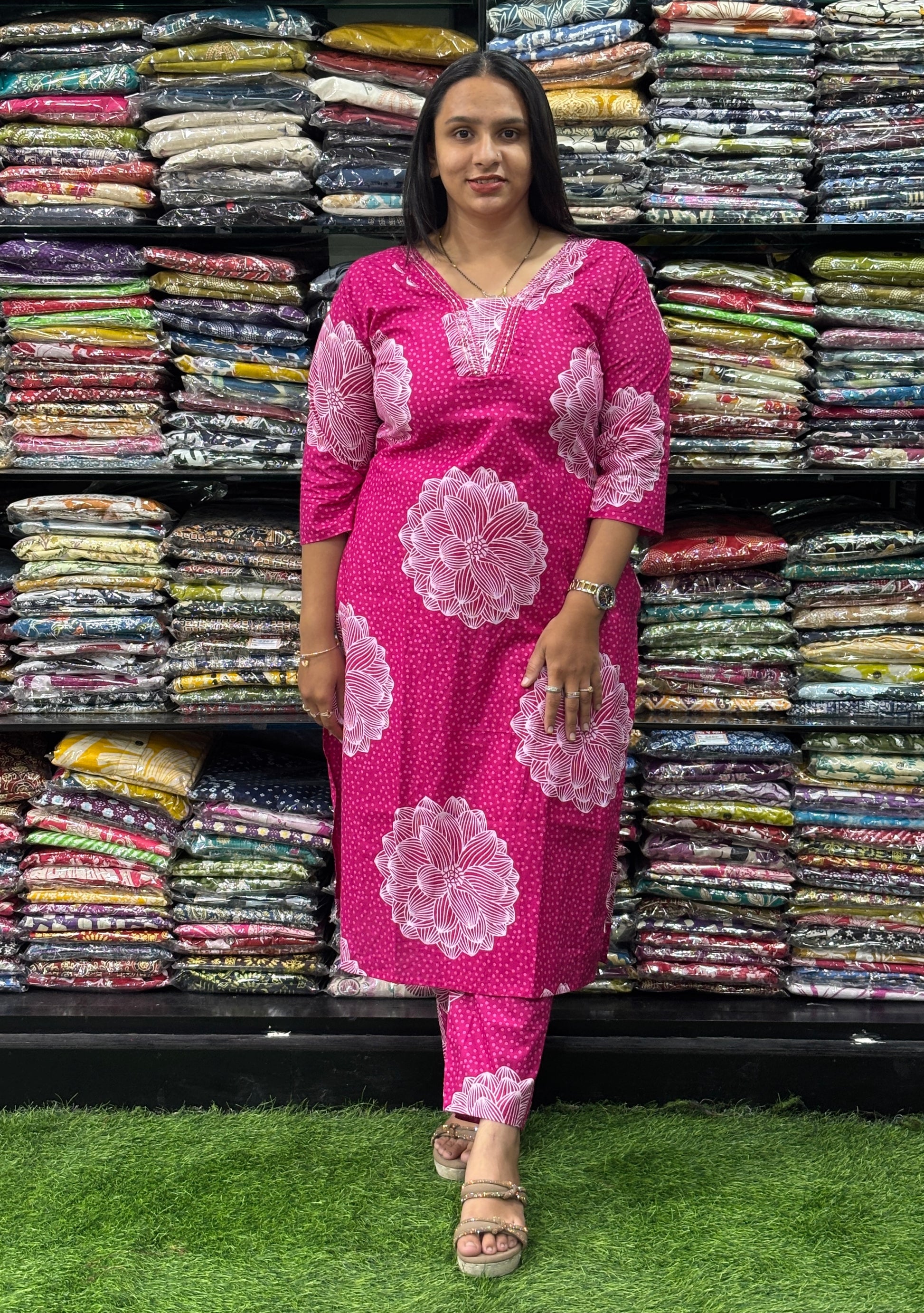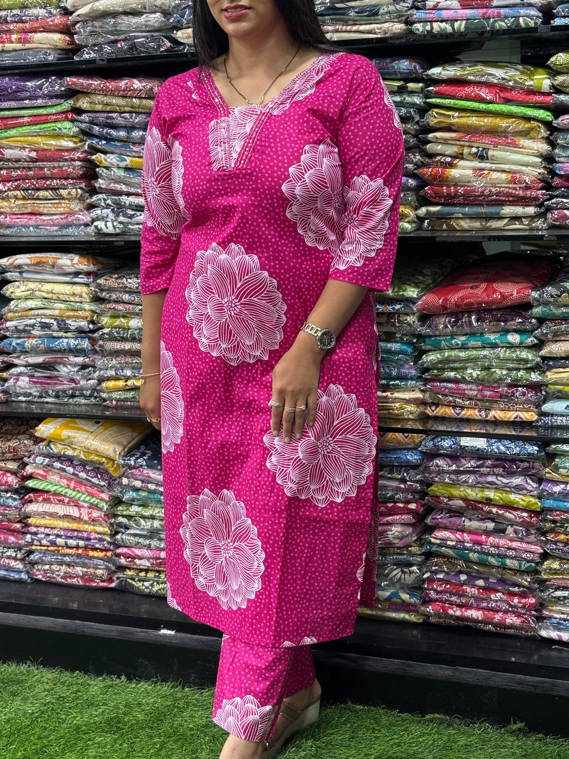 STRAIGHT KURTI WITH PANT (PURE CAMRIC COTTON,HANDWORK)