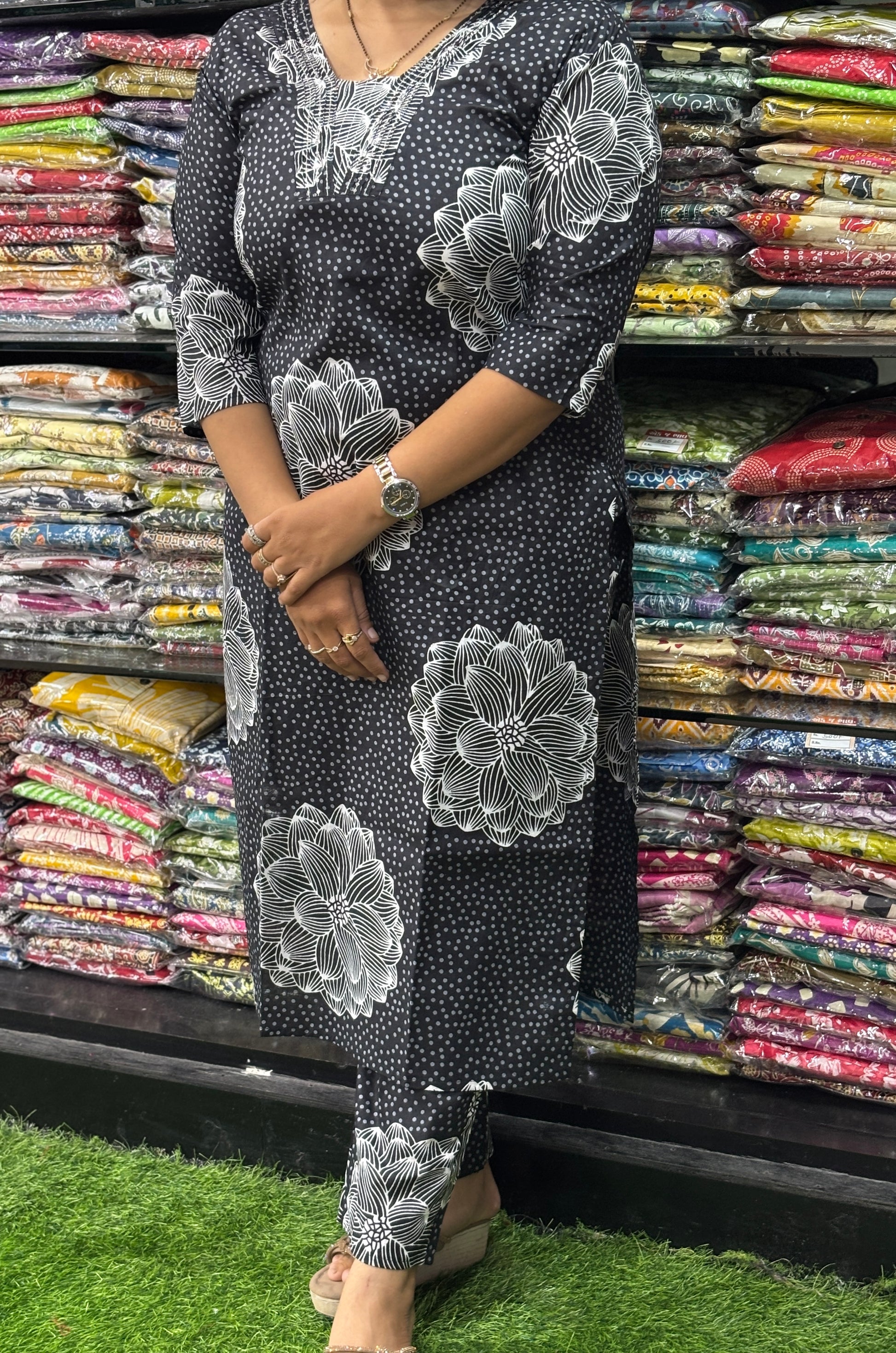 STRAIGHT KURTI WITH PANT (PURE CAMRIC COTTON,HANDWORK)