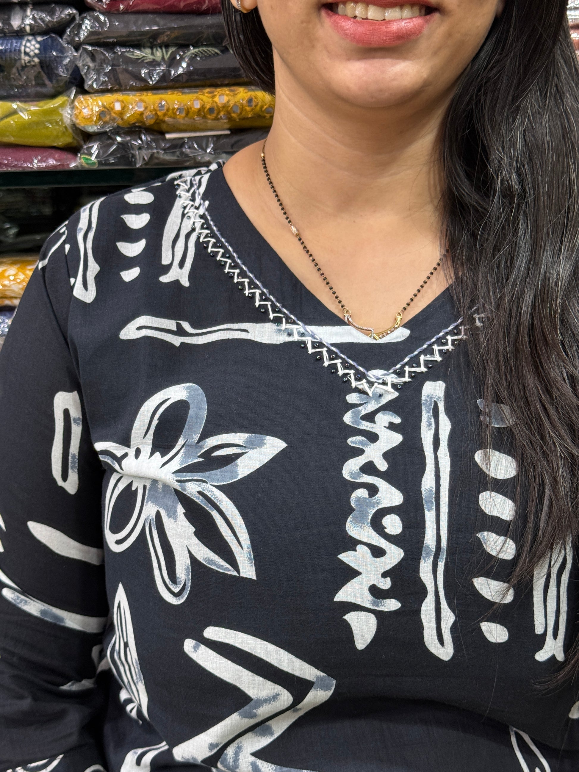 STRAIGHT KURTI WITH PANT (PURE CAMRIC COTTON WITH COTTON LINING,WITH WORK)