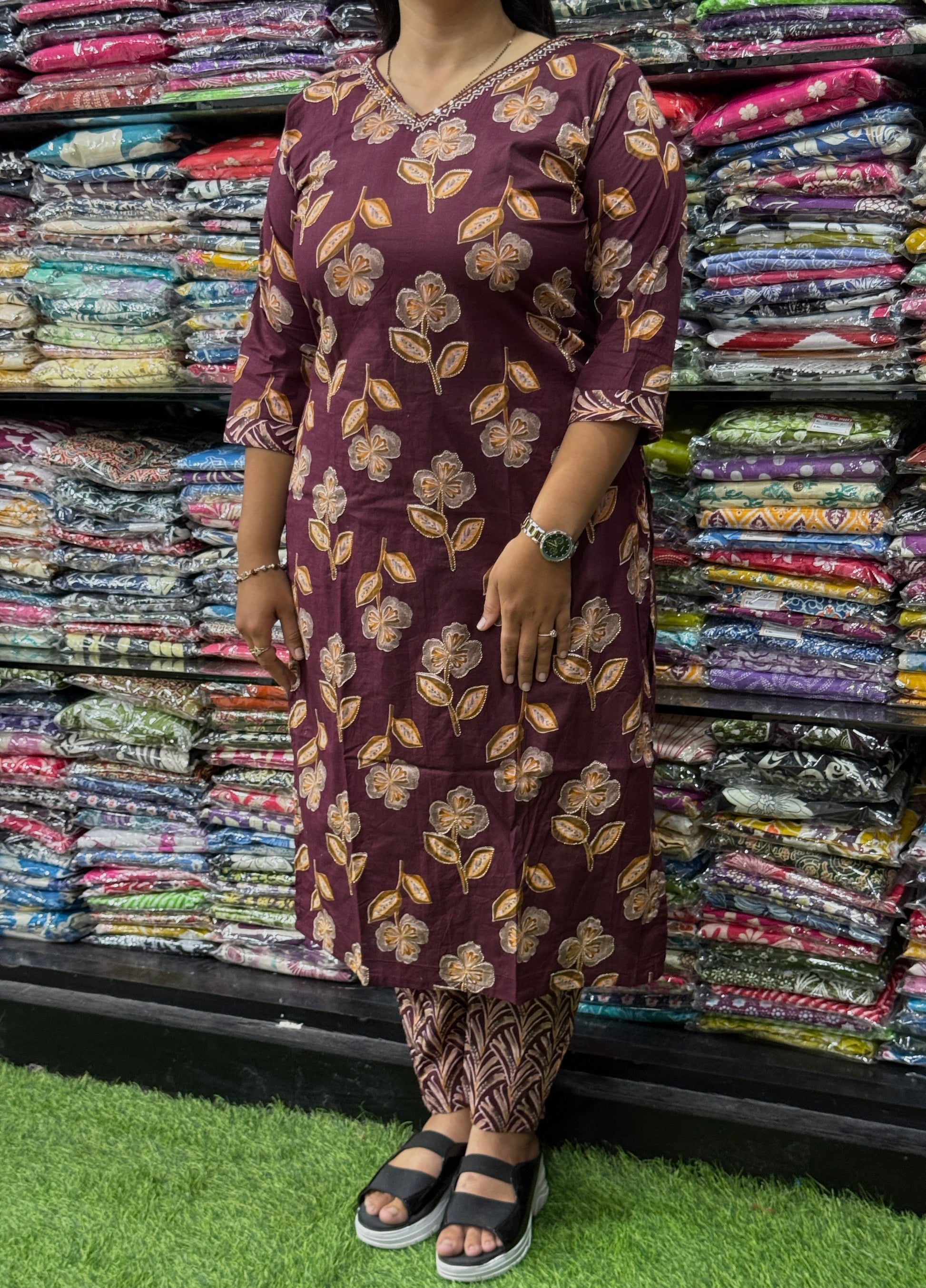 STRAIGHT KURTI WITH PANT (PURE CAMRIC COTTON, WITH WORK)