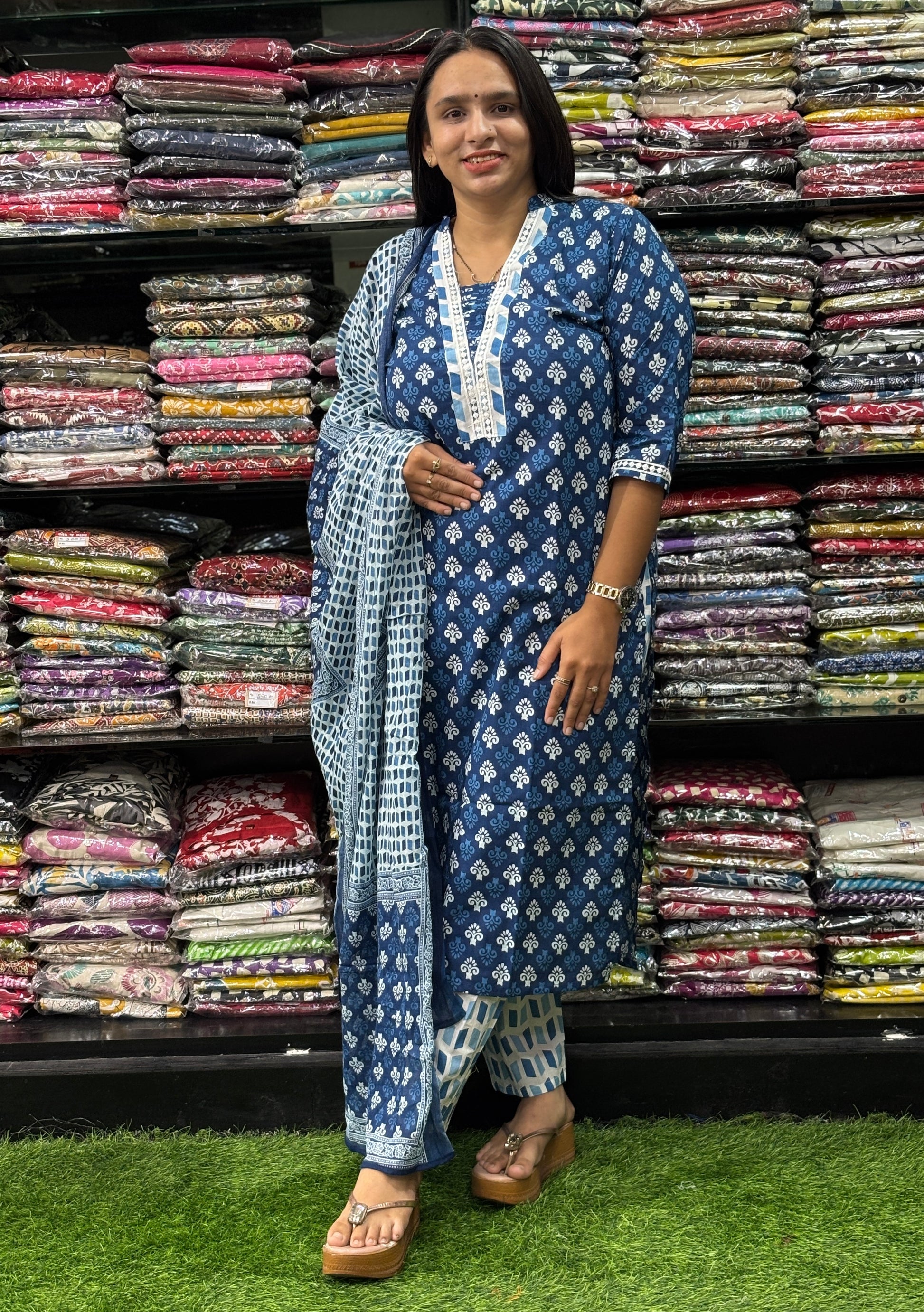 STRAIGHT KURTI WITH PANT & DUPATTA (PURE CAMRIC COTTON,COTTON LINING)