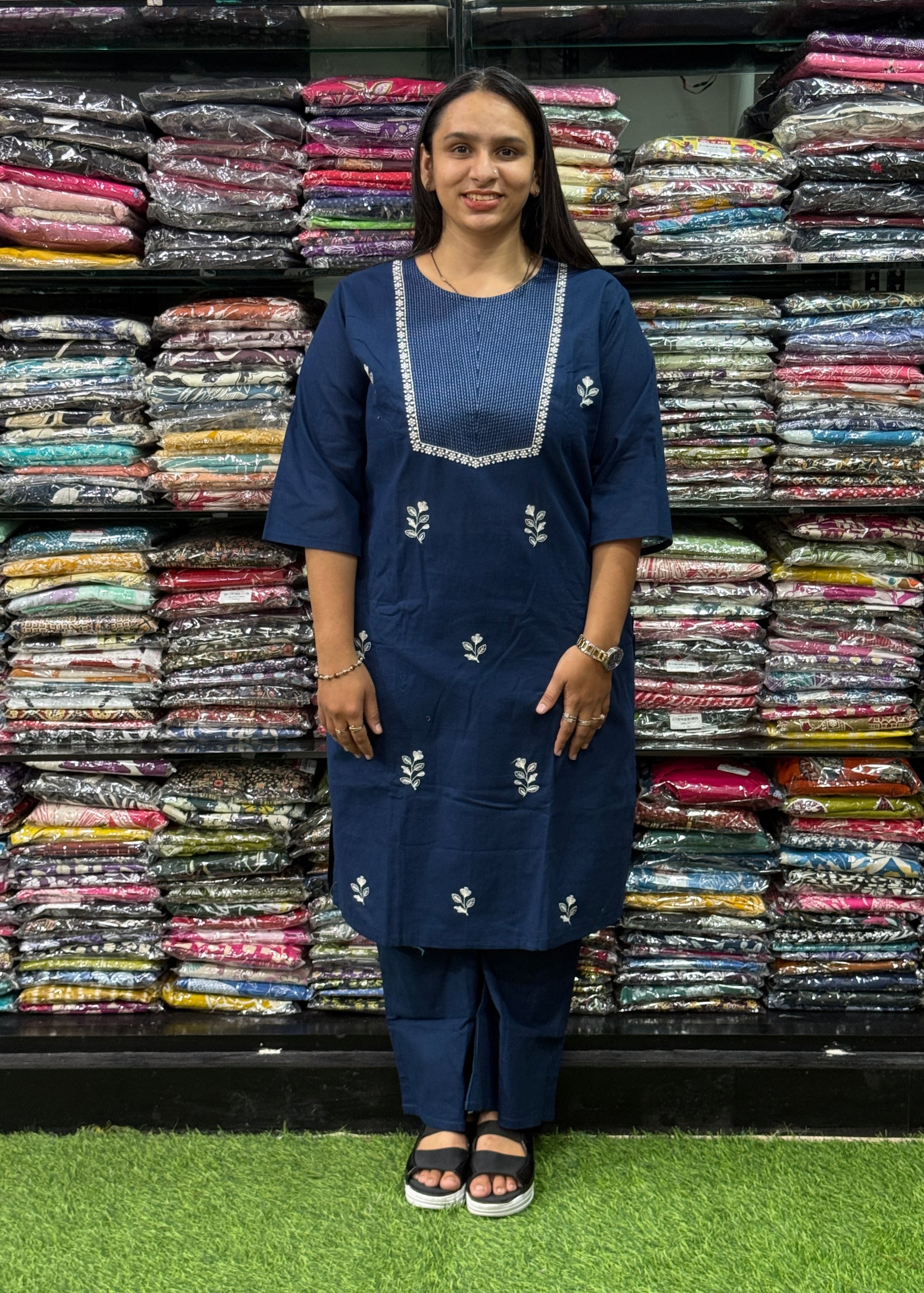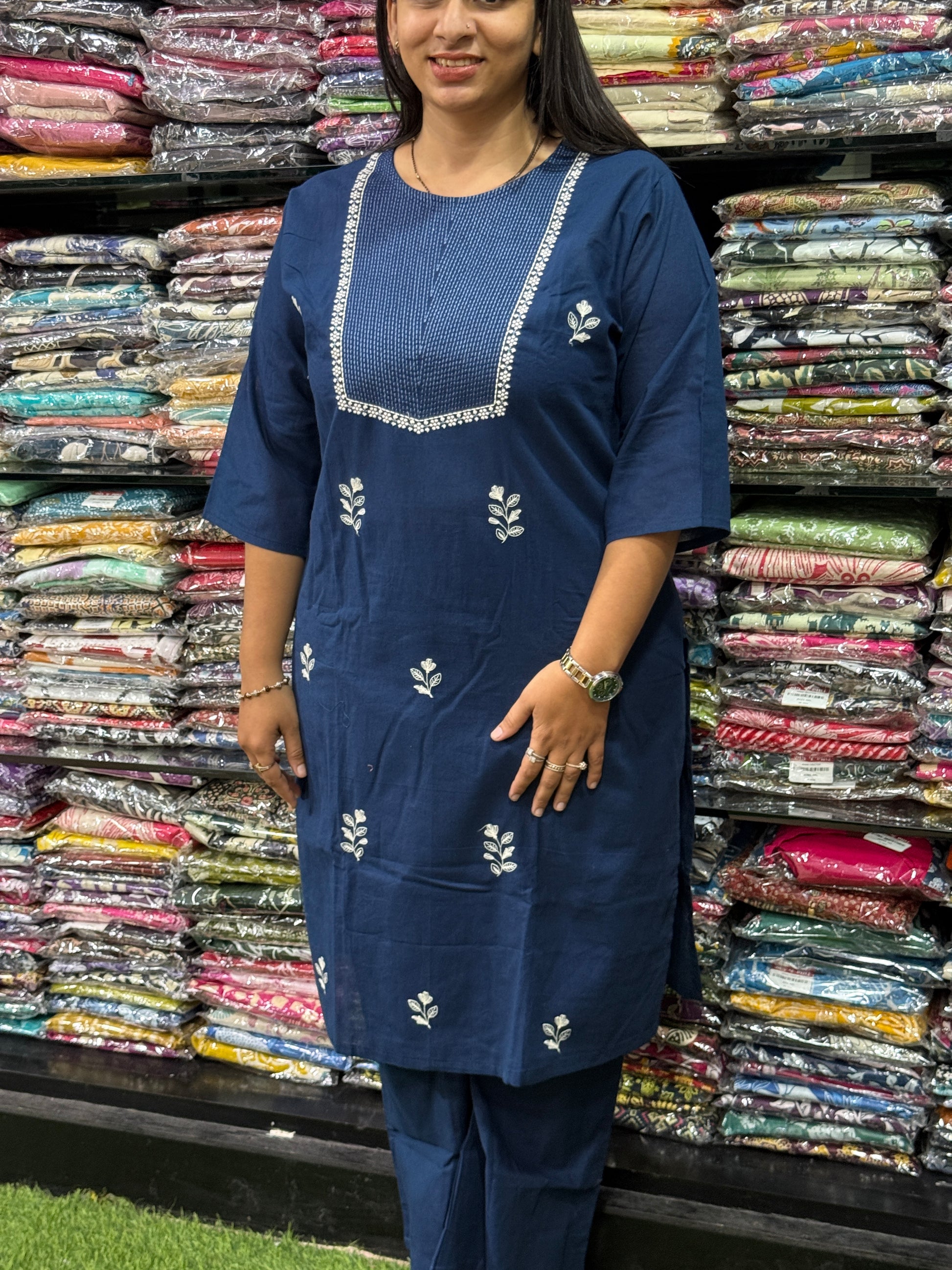 STRAIGHT KURTI WITH PLAZO(FLEX COTTON,WITH WORK)
