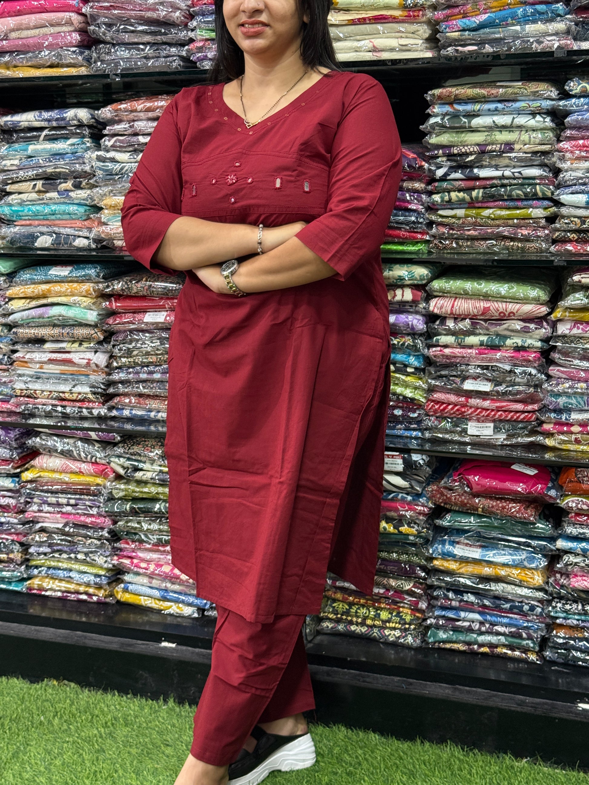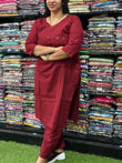 STRAIGHT KURTI WITH PENT(PURE CAMRIC COTTON,WITH WORK)