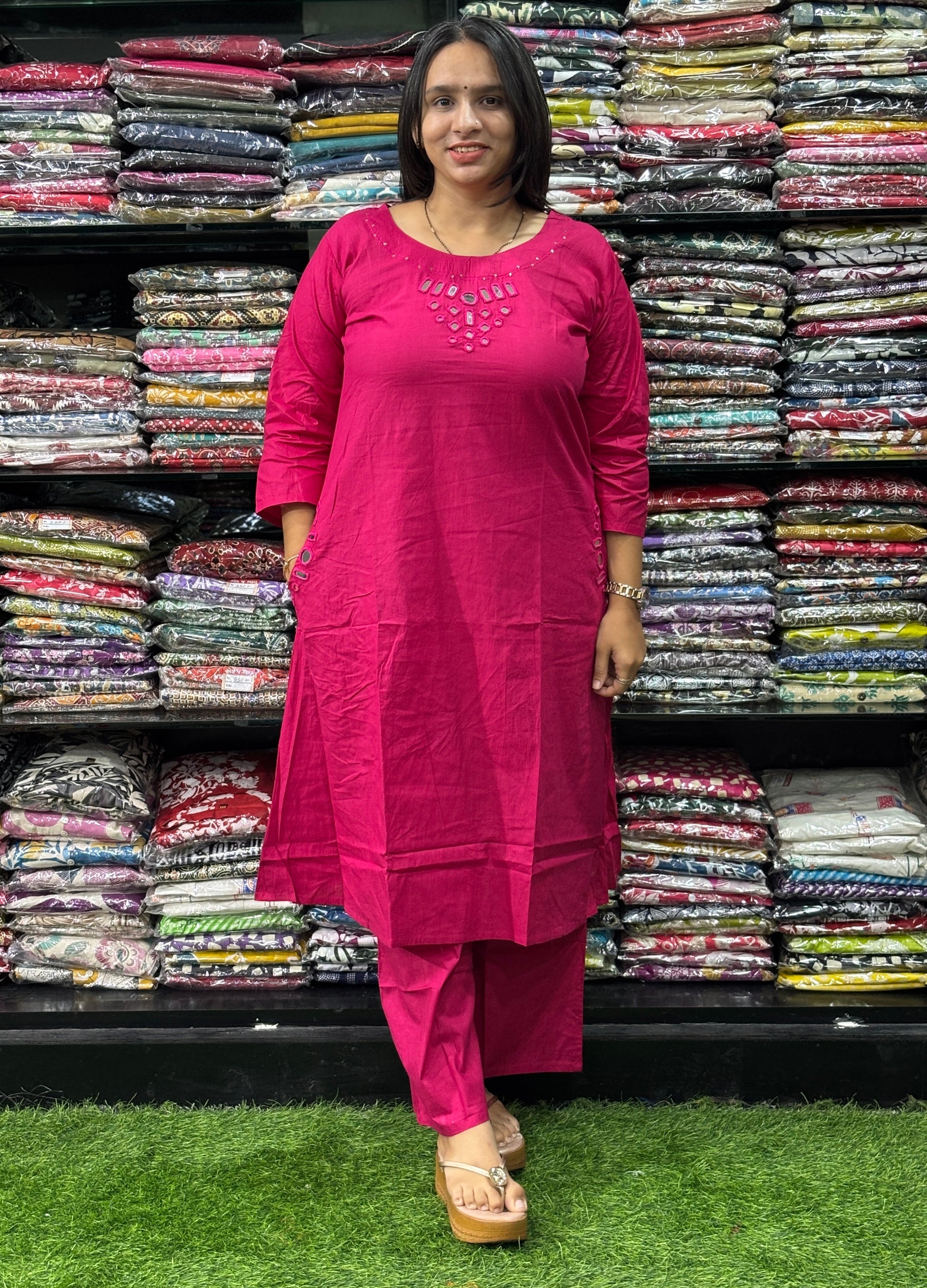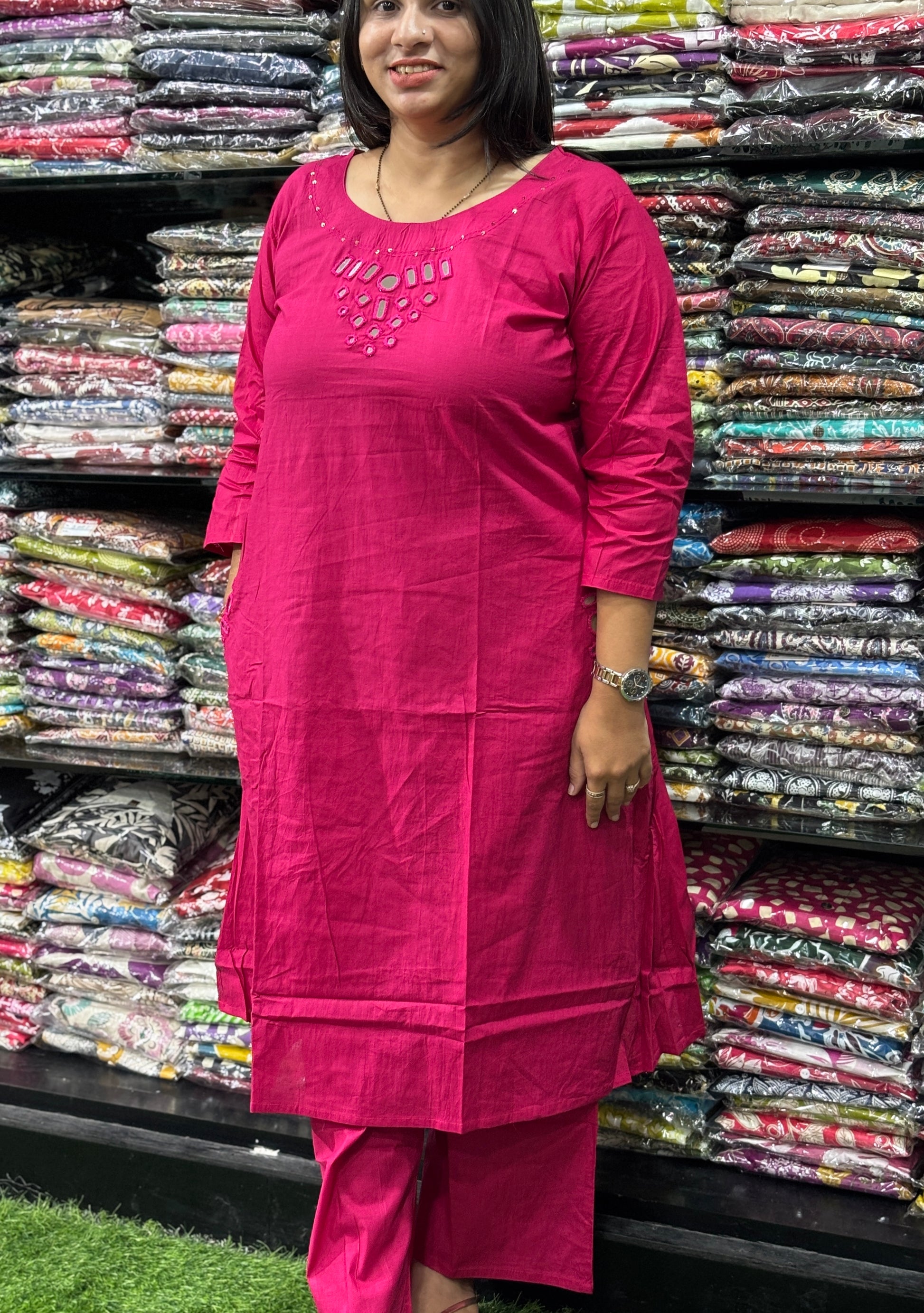 STRAIGHT KURTI WITH PLAZO (CAMRIC COTTON,EMBROIDERY)