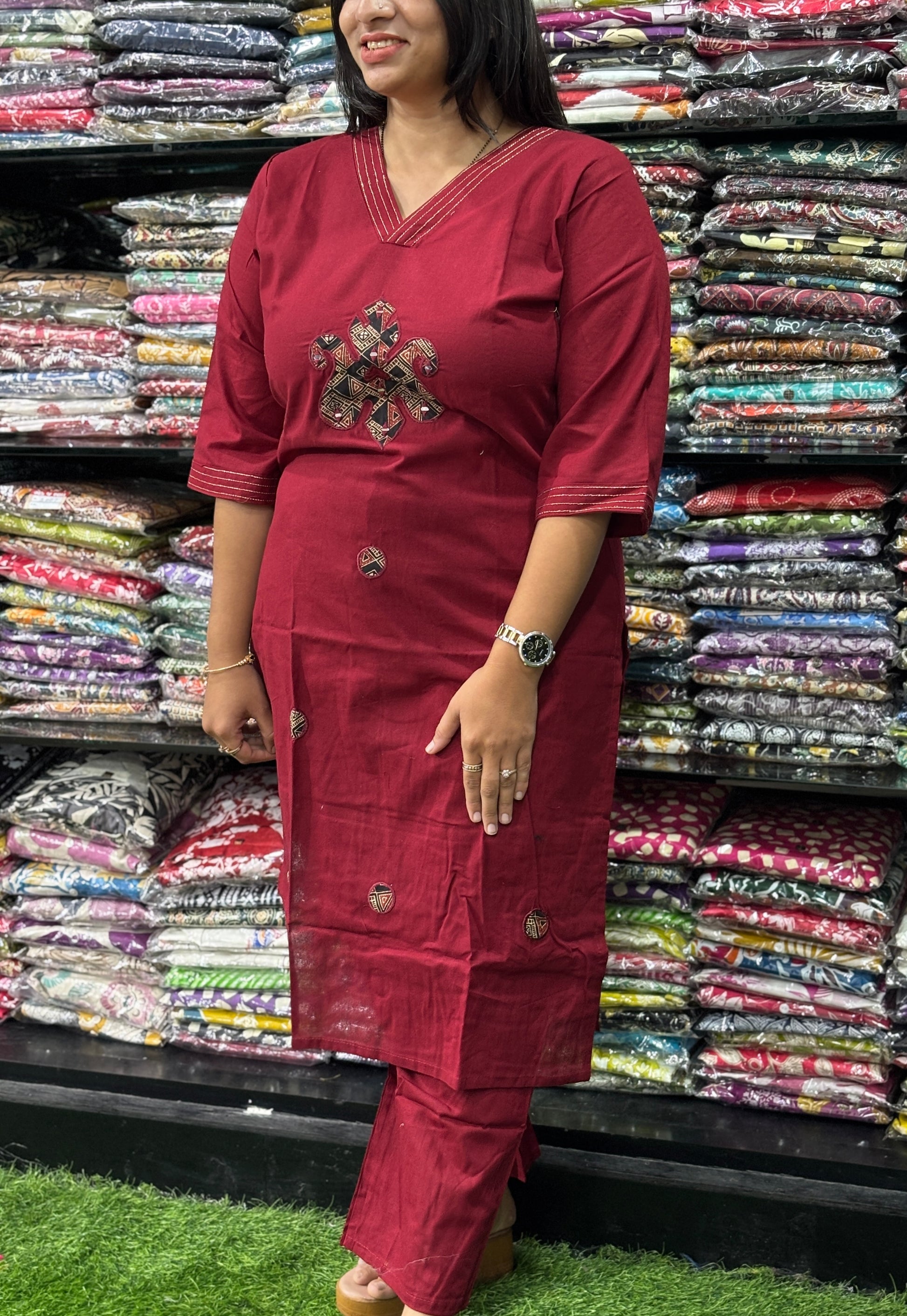 STRAIGHT KURTI WITH PLAZO (FLEX COTTON,EMBROIDERY)