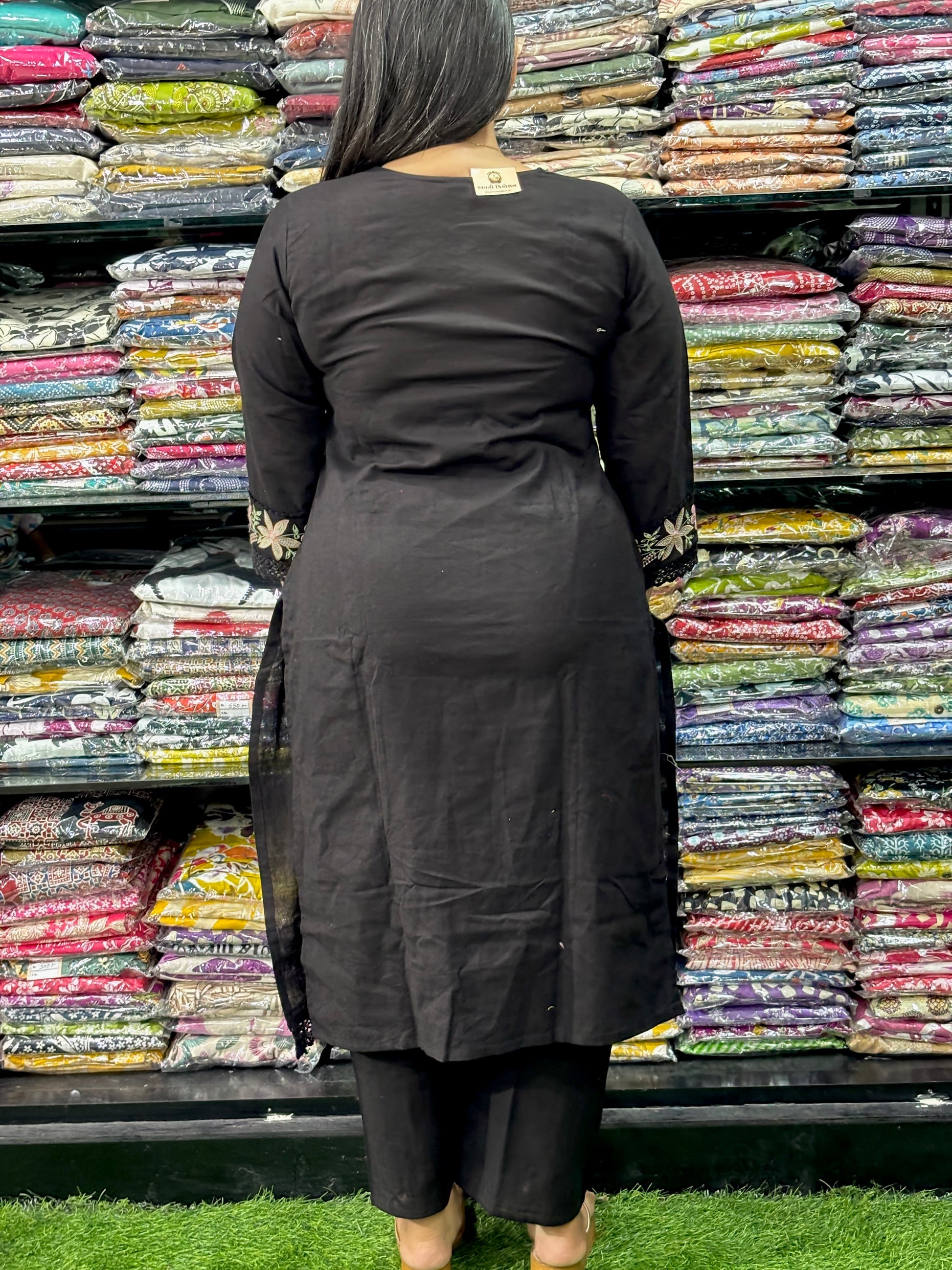 STRAIGHT KURTI WITH PLAZO (KHADI COTTON,WITH WORK)