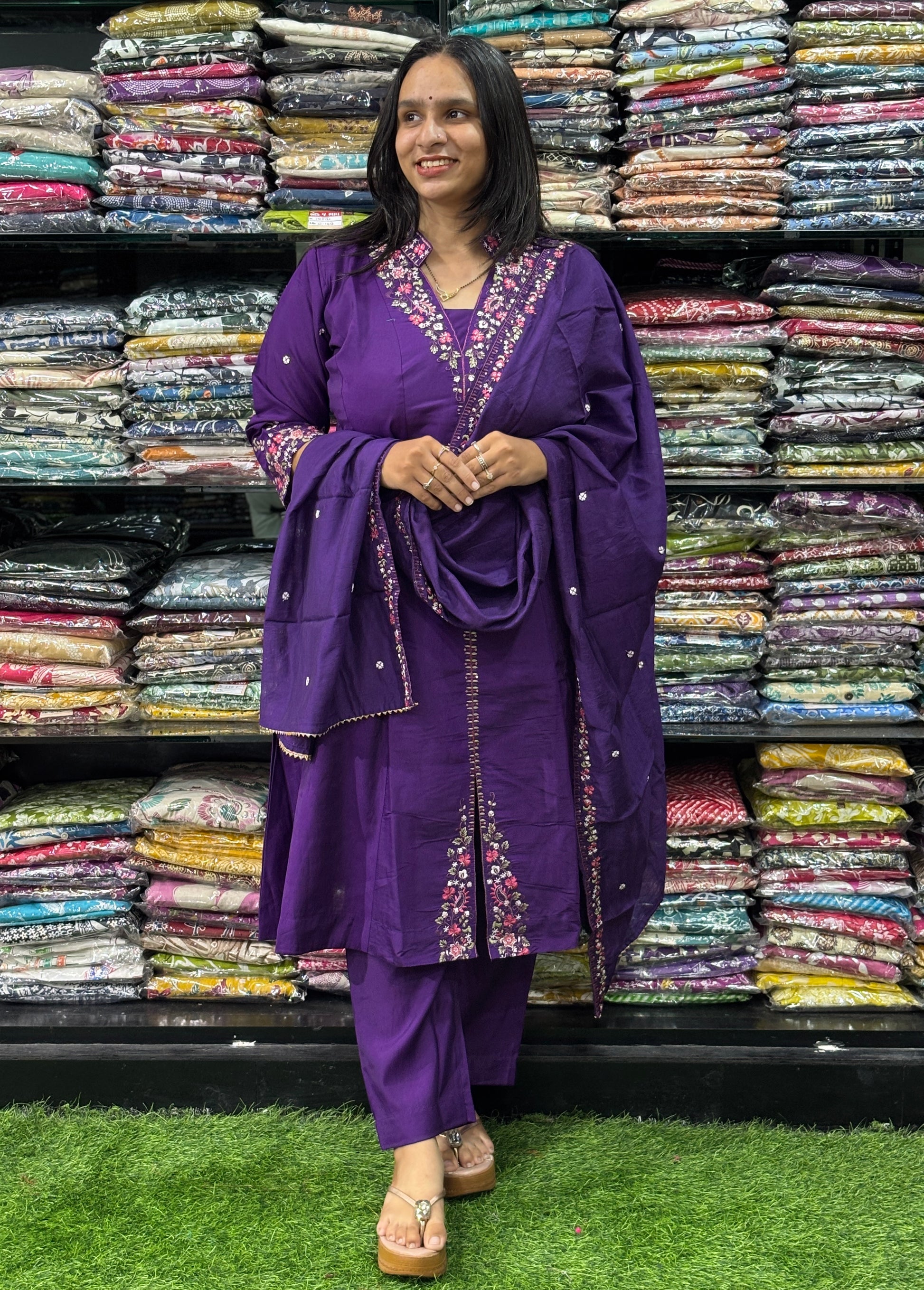 ALINE KURTI PENT DUPATTA (ROMAN SILK WITH LINING,WITH WORK)