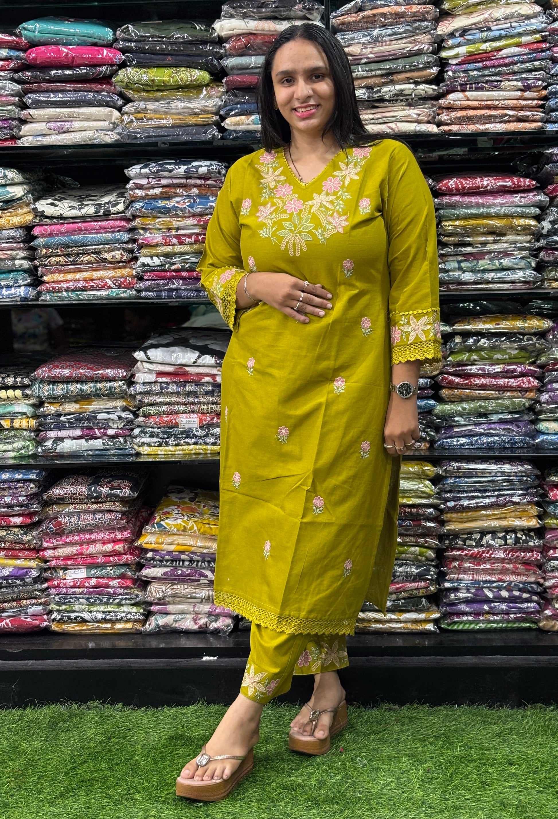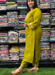 STRAIGHT KURTI WITH PLAZO (KHADI COTTON,WITH WORK)