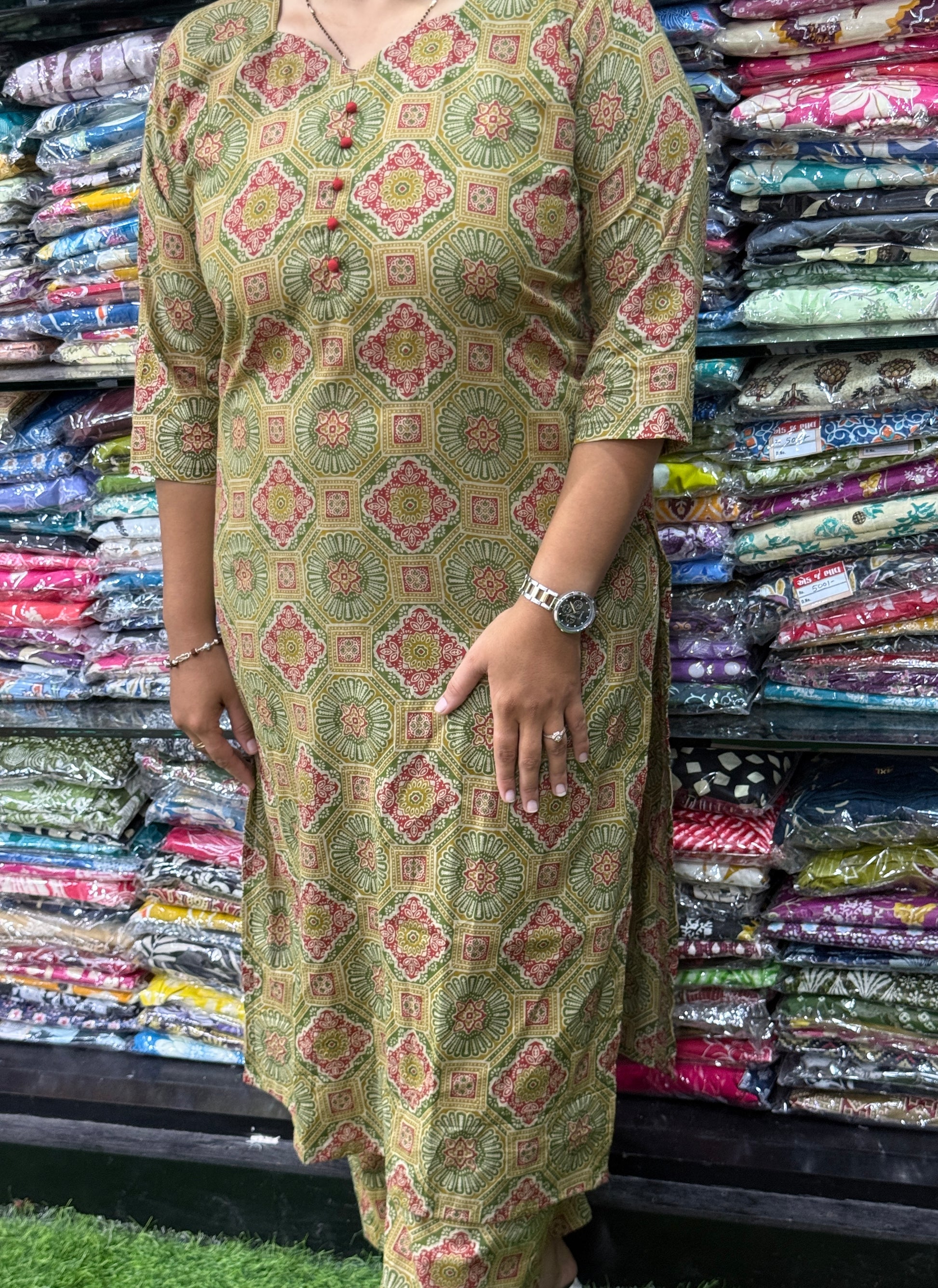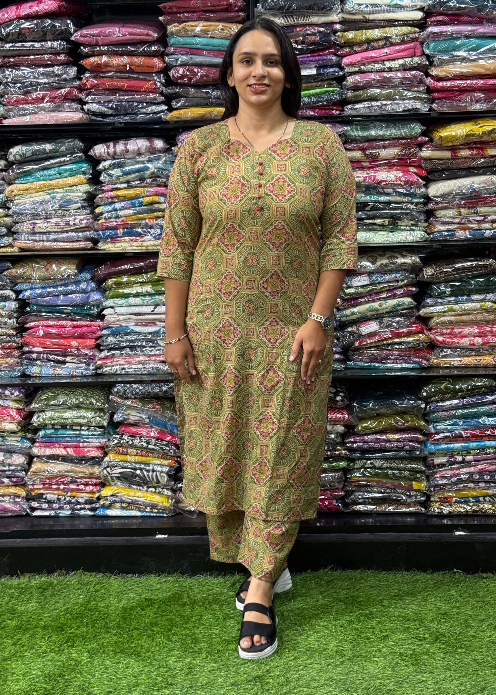 STRAIGHT KURTI WITH PLAZO (PURE CAMRIC COTTON)