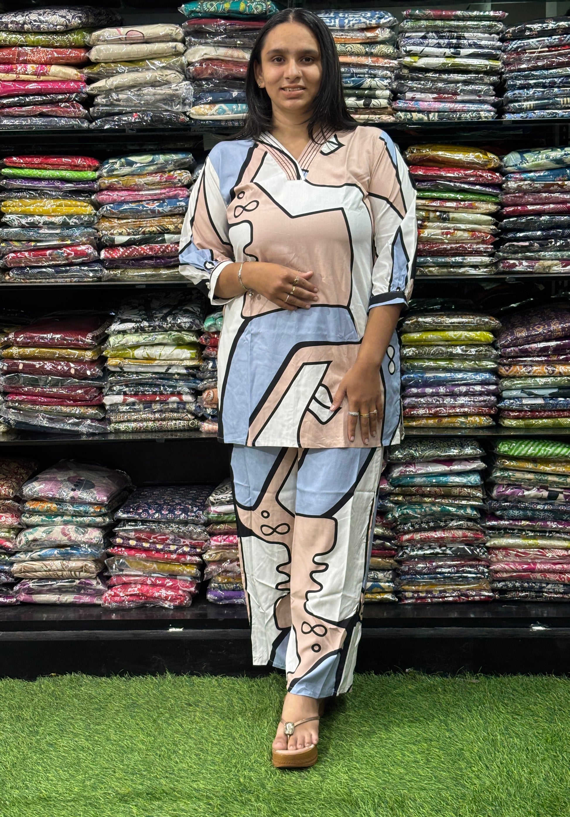 STRAIGHT SHORT KURTI WITH PLAZO (HEAVY 22KG RAYON)