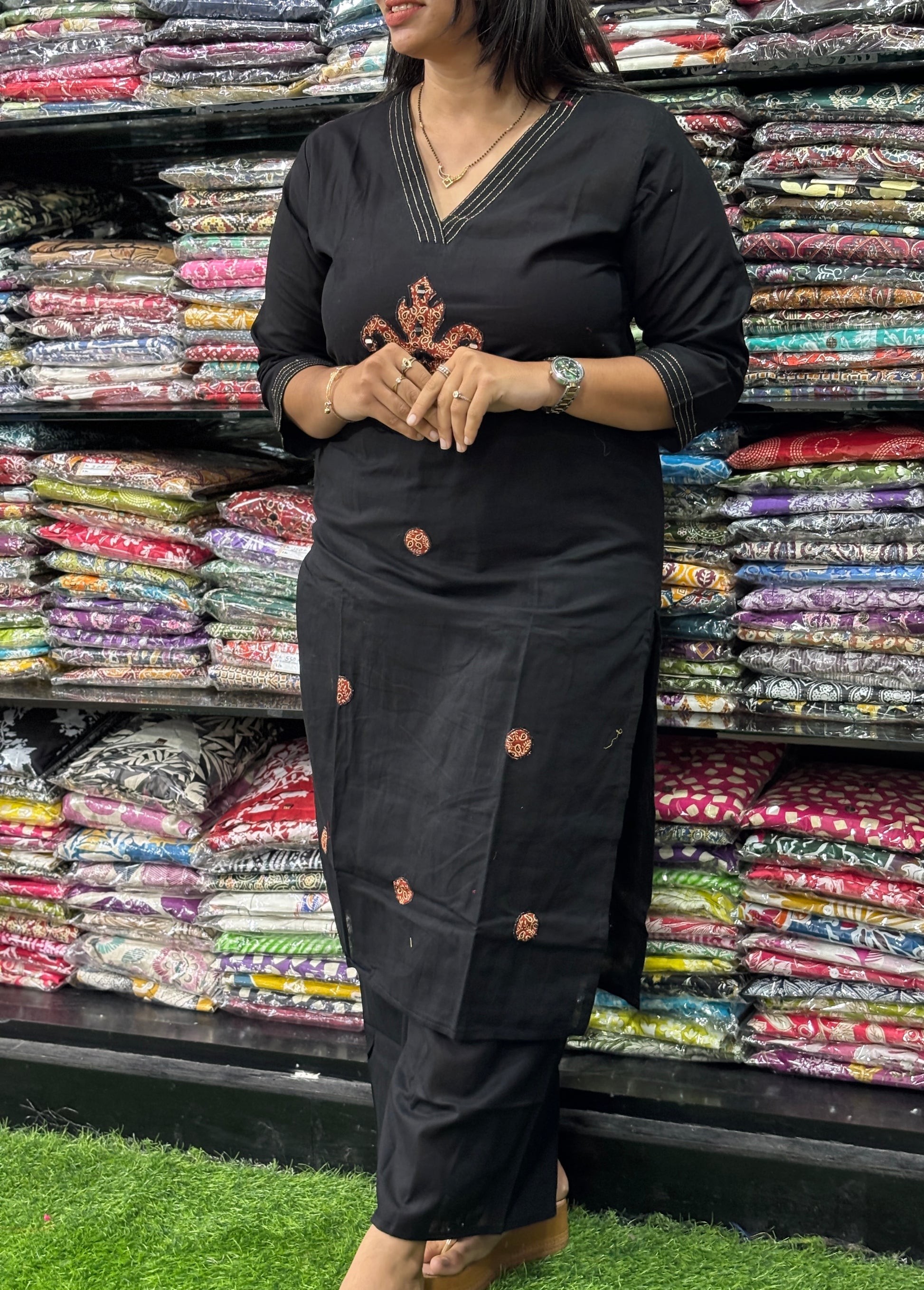STRAIGHT KURTI WITH PLAZO (FLEX COTTON,EMBROIDERY)